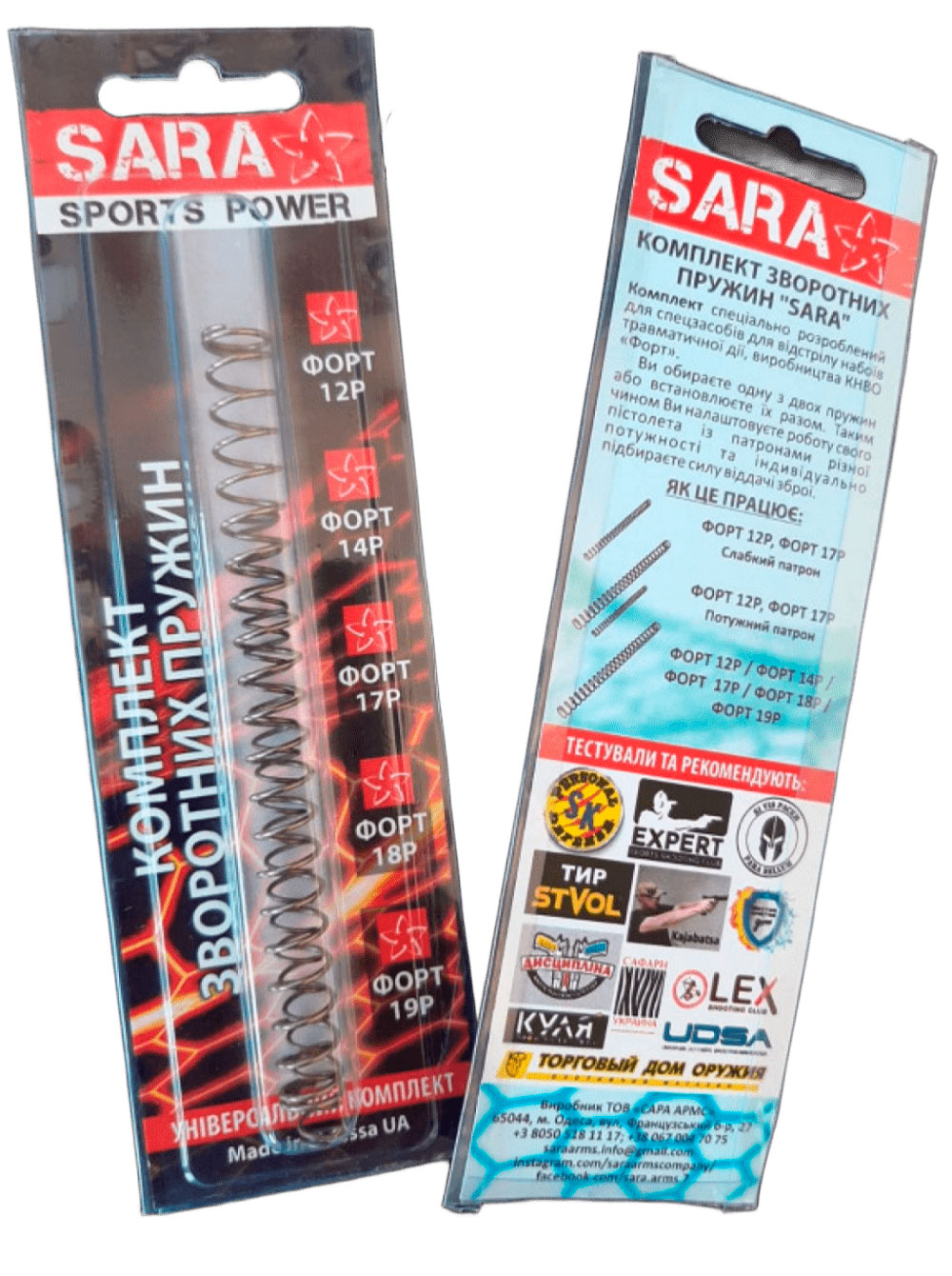 Усиленная двойная возвратная пружина подходит для моделей травматических пистолетов Форт-12, 14, 17, 18, 19.