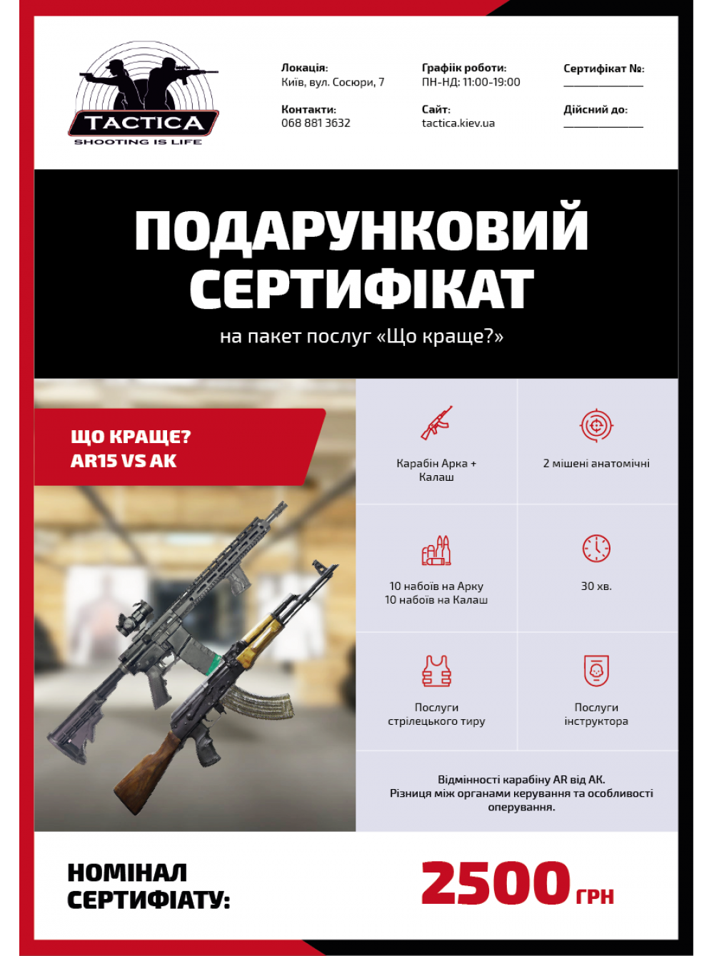 Локація: критий Тир Tactica, вул. В. Сосюри, 7