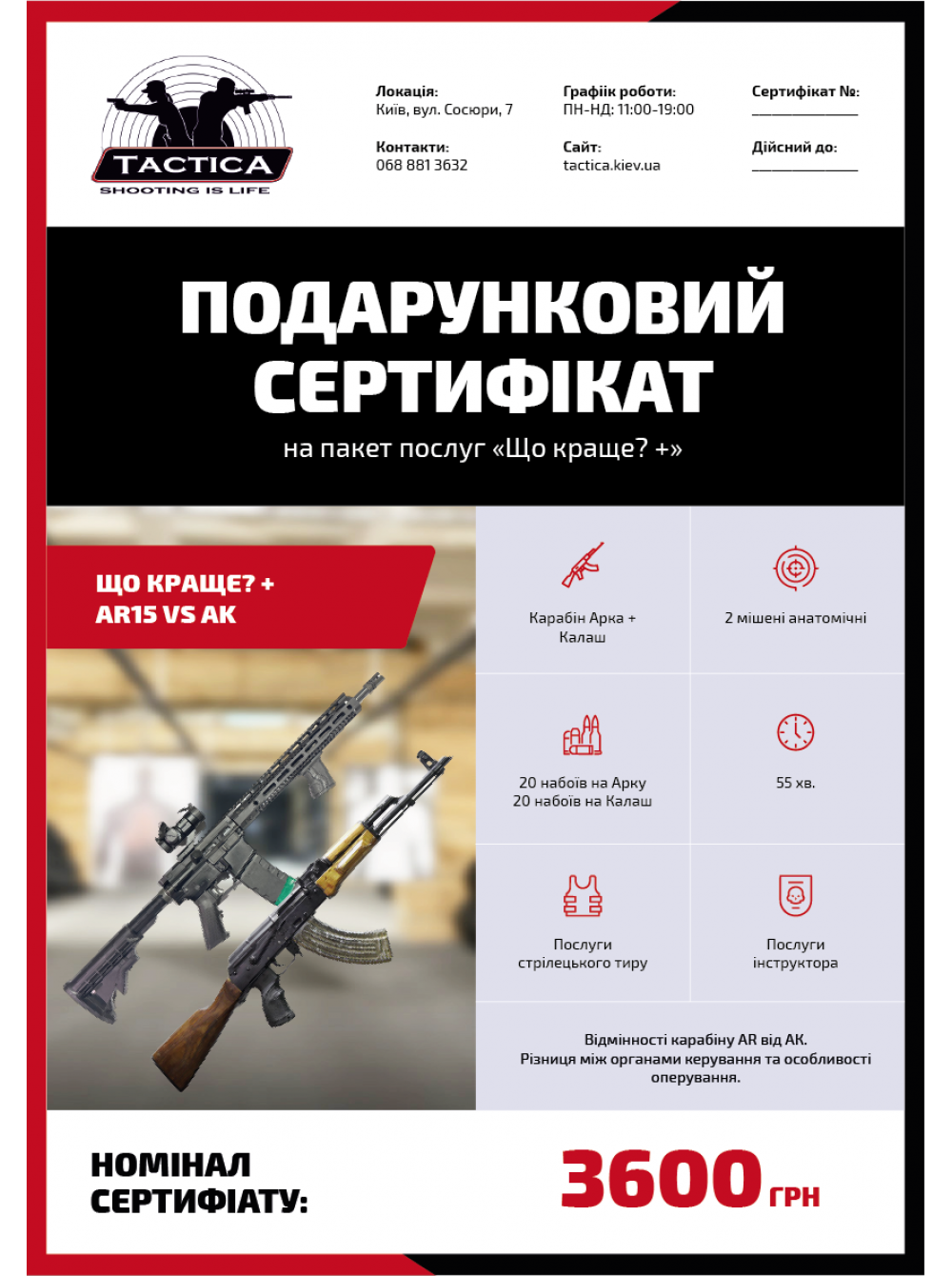 Подарунковий сертифікат «Що краще? +» AR15 vs AK - тренування зі стрільби з карабінів Арка + Калаш.