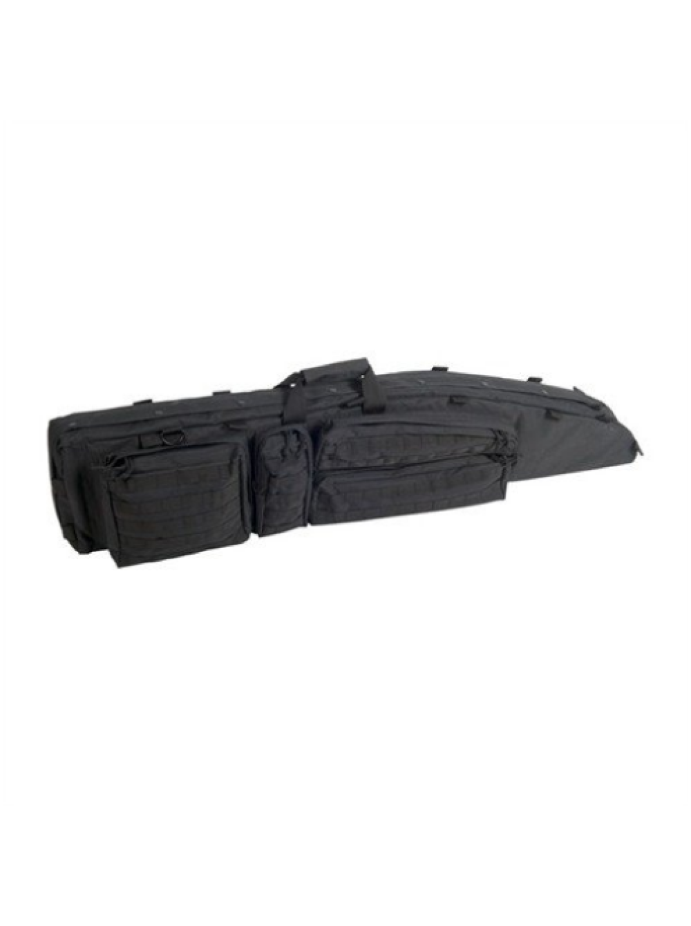 Сумка-чохол для зброї Voodoo Tactical The Ultimate Sniper drag bag 51" — це якісне, професійне військове екіпірування. Ця модель практична й універсальна, гарантує комфортне транспортування зброї та її збереження. Для зручності експлуатації чохол має спеціальні лямки рюкзачного типу. Модель оснащена також зйомним підсумком для зберігання боєприпасів і додатковими кишенями та відділеннями для розміщення пістолетів. Сумка-чохол виготовлена зі 100% нейлону з водовідштовхувальним покриттям.